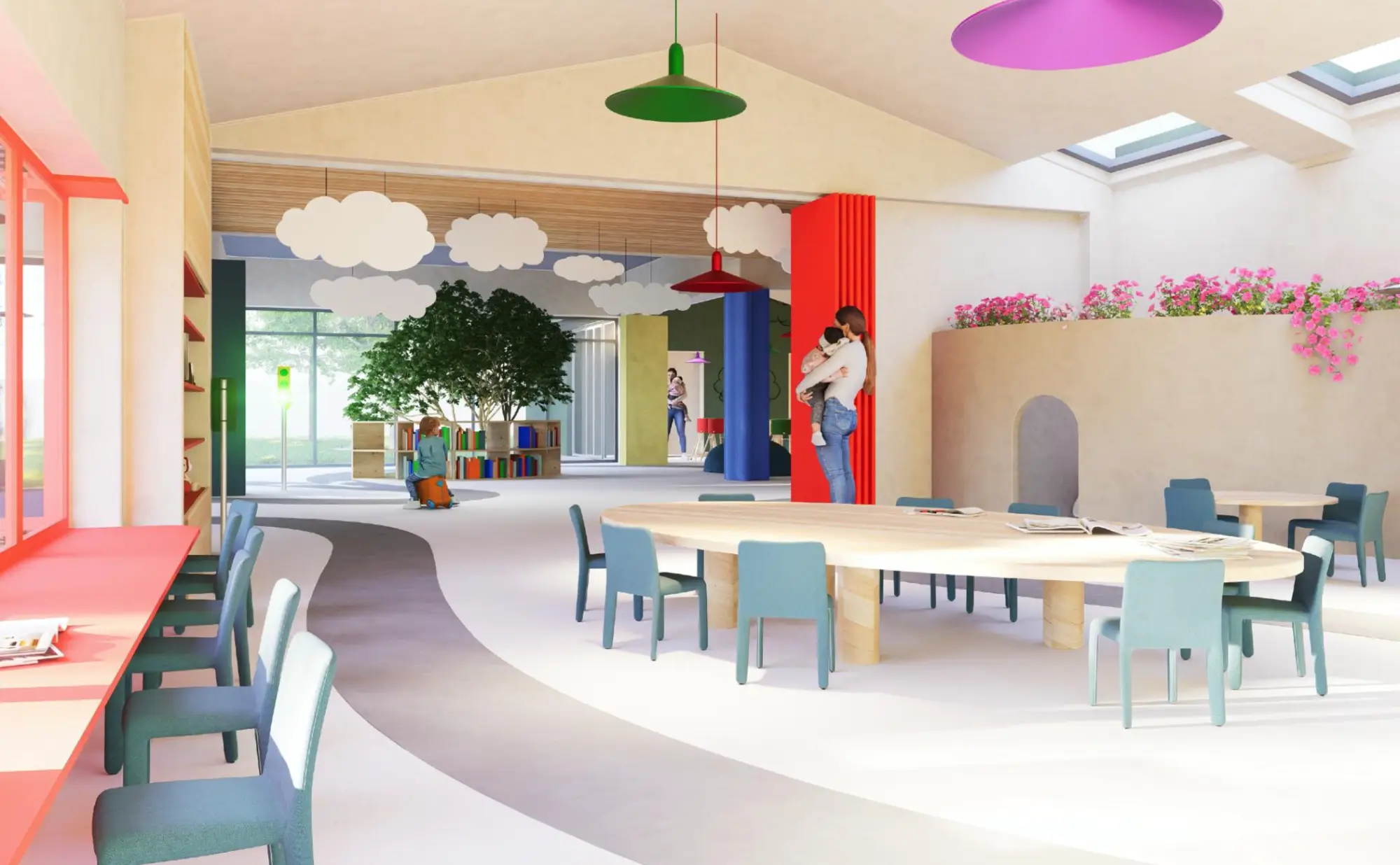 Il progetto adotta un linguaggio contemporaneo e semplice che rispetta l’espressività dei bambini, ispirandosi alla forma semplice e familiare dei loro disegni.
